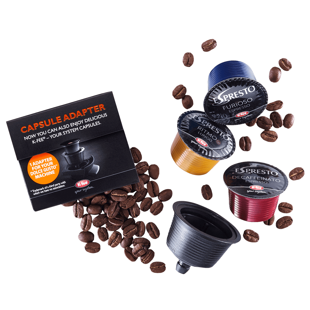Adapter mit Kapsel entnehmen, Kapsel herausnehmen und den Adapter kurz abspülen - für beste Geschmacksqualität. Das Starter-Pack: Direkt mit 10 Kapseln starten. Sie erhalten hier 1 K-fee Kapsel-Adapter für Dolce Gusto®* Maschinen plus 10 ESPRESTO® Kapseln: 2 Kapseln ESPRESTO Ritmo (Lungo), 2 Kapseln ESPRESTO Furioso (Espresso), 2.