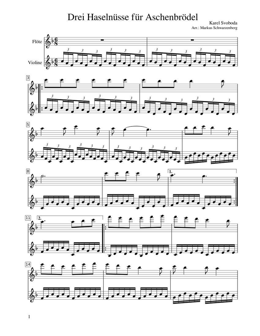 Drei Haselnüsse für Aschenbroedel Flöte+Violine Sheet music for Piano, Flute (Solo)