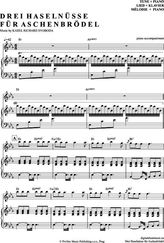 Drei Haselnüsse Für Aschenbrödel Klavier Begleitung + Gesang PDF Noten von Karel Svoboda in Es