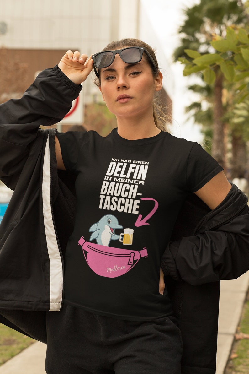 Delfin in meiner Bauchtasche Party Outfit Sommer Mallorca TShirt Amazon.de Fashion