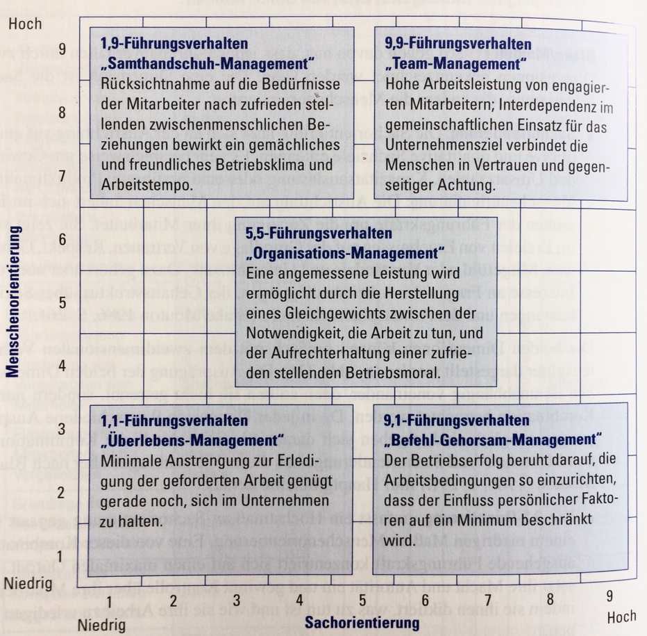 Download chapter PDF. Auf Grundlage der Verhaltensdimensionen für die Führung der Universitäten in Ohio und Michigan stellten Blake und Mouton 1964 erstmals ihr „Managerial Grid" (engl. für „Führungsgitter") vor. Die Achsen des Modells stellen die Orientierung der Führungskraft an der Aufgabe und/oder an den Mitarbeitern dar.