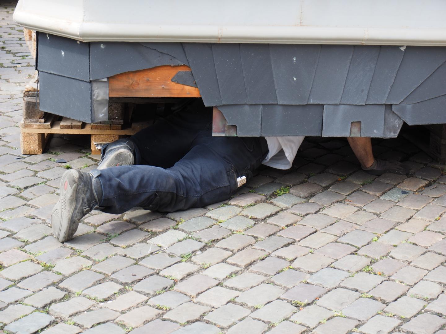 Ich stehe mit Hund am Fahrkartenschalter. "Ich möchte einen Sitzplatz reservieren." "Einen was