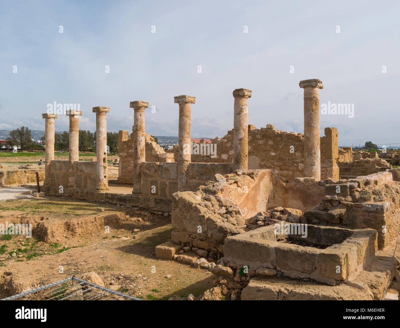 Ausgegraben dorischen Säulen des Haus des Theseus eine große römische Villa in Nea Pafos