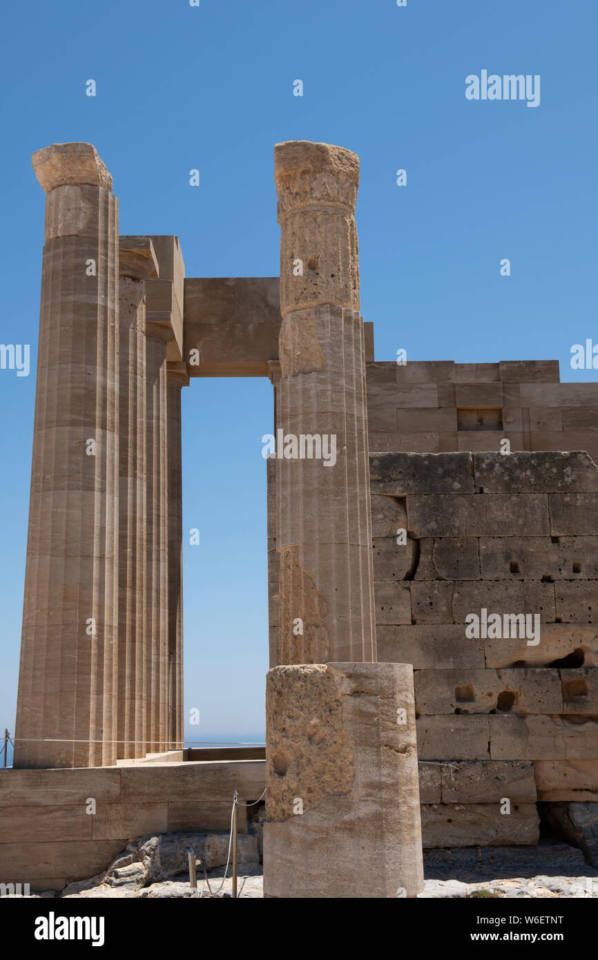 Griechenland, Rhodos. Historische, mittelalterliche Lindos Akropolis von Lindos. 4. Jahrhundert